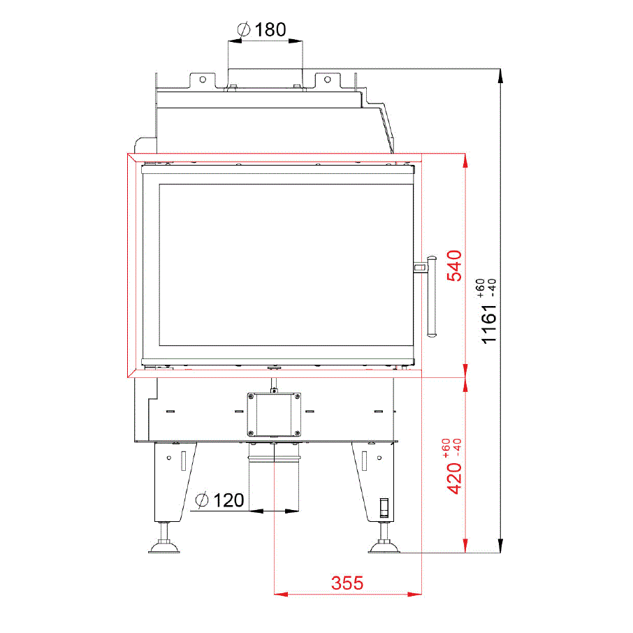 Vzduch je vedený zadnou stenou cez nahrievacie komory.