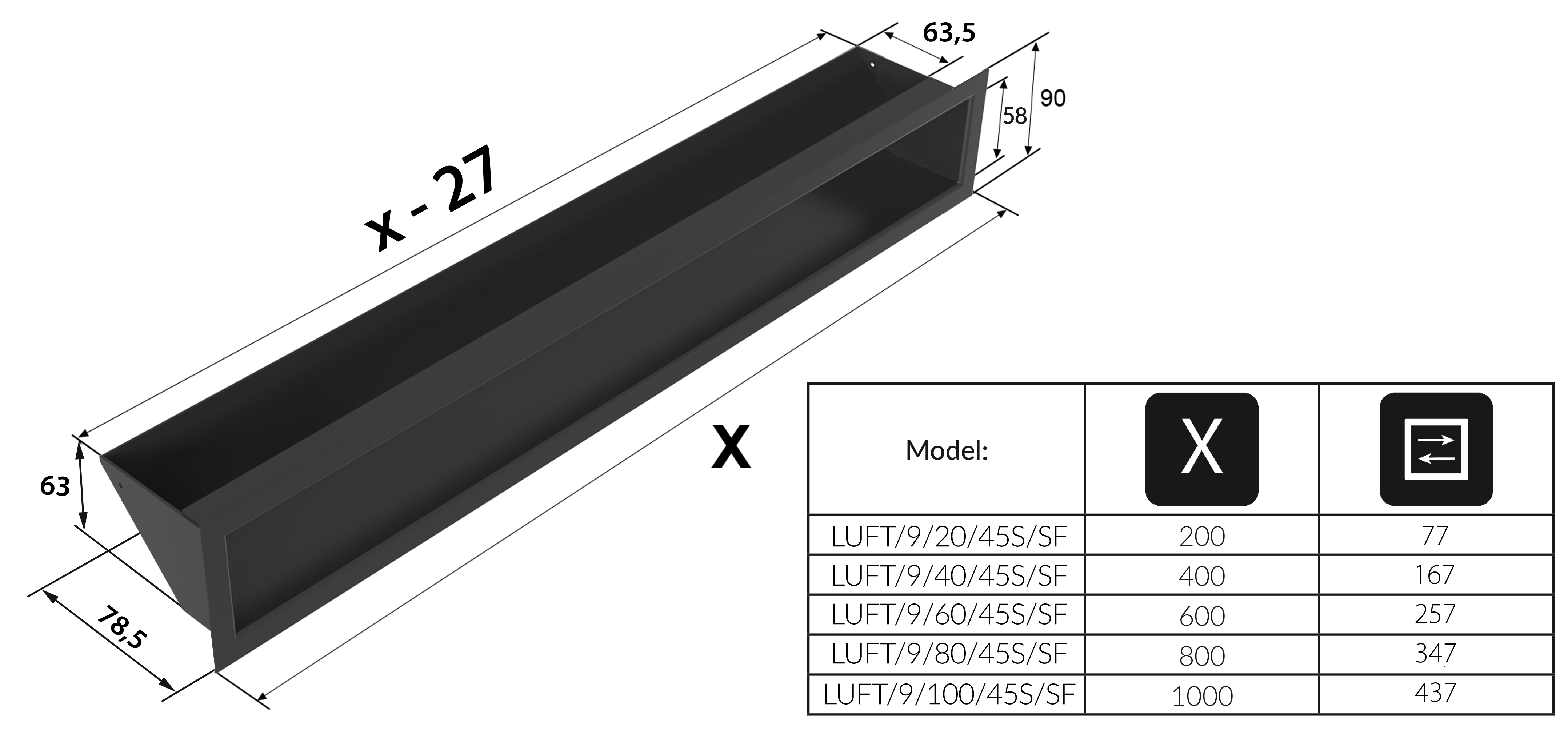 Krbová mriežka LUFT 45S sa inštaluje na krbové obstavby a je estetickým zakončením otvorov potrebných na prúdenie vzduchu v krbe. Vďaka svojmu dizajnu je ideálna pre moderné interiéry. Charakteristickým črtom modelu LUFT 45S je maskovaný otvor mriežky - cez krbovu mriežku nie je vidno do krbovej obstavby, no napriek tomu zabezpečuje optimálne prúdenie vzduchu. Musí byť však dodržaná správna montáž: ak umiestňujete mriežku nad krbovou vložkou, ktorá má slúžiť na výdaj teplého vzduchu, otočte mriežku otvorom smerom dole. Ak umiestňujete mriežku pod krbovou vložkou, ktorá má slúžiť na príjem chladného vzduchu, otočte mriežku otvorom smerom hore. Pamätajte tiež na minimálnu požadovanú veľkosť jednotlivých mriežok podľa výkonu krbovej vložky. Mriežky sú farbené práškovou metódou, čím sú odolné voči vysokým teplotám i mechanickému poškodeniu. Záruka 24 mesiacov.