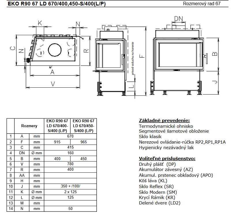 Kobok EKO R90-S/400 LD L/P 670/400 Teplovzdušná krbová vložka