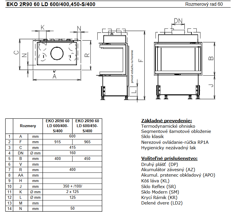 Kobok EKO 2R90-S/400, LD2 600/400 Teplovzdušná krbová vložka